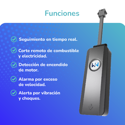 Dispositivo versátil para vehículos, con monitoreo en tiempo real, corte remoto y alertas por choques, vibración o exceso de velocidad.